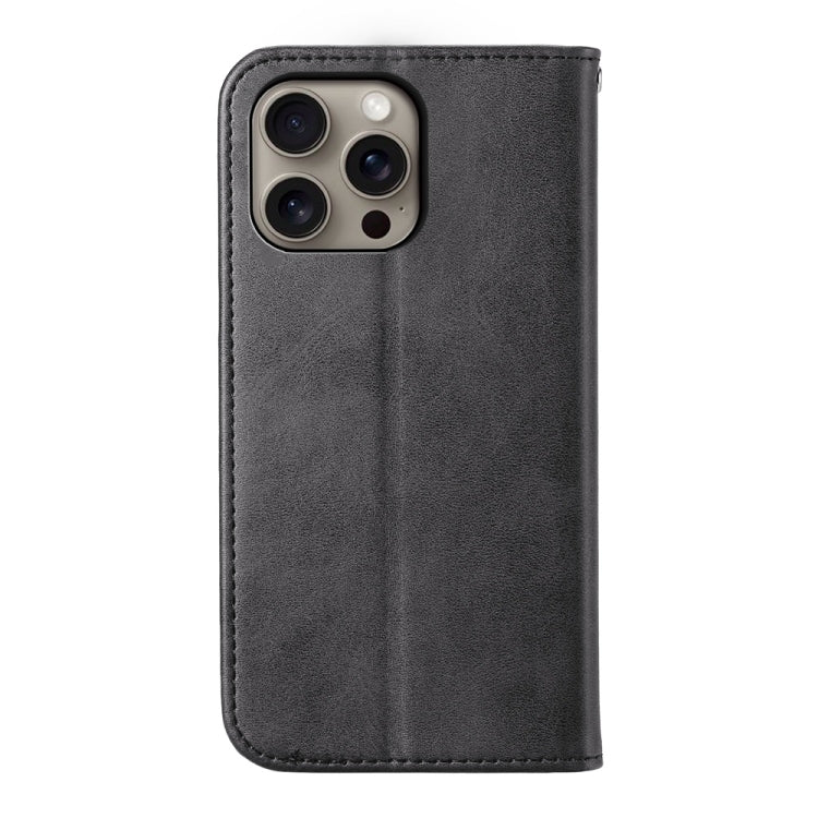 Funda de Cuero Magnética Textura Piel de Becerro Cuadrícula Cúbica para iPhone 16 Pro Max (Negro)