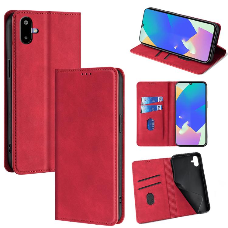 Funda de cuero magnética con textura de piel para Samsung Galaxy F06 5G (roja)