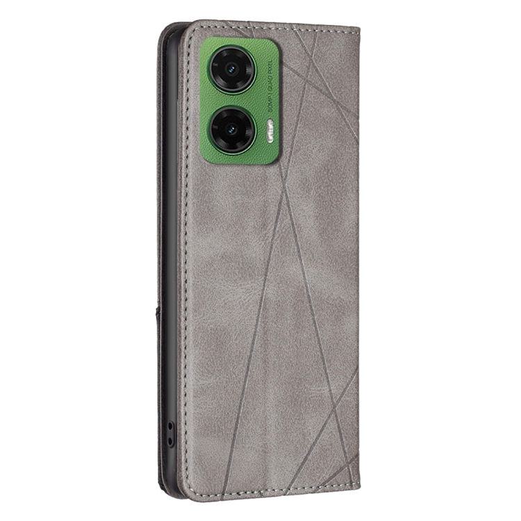 Funda de Cuero Magnética para Motorola Moto G35 con Textura de Rombos (Gris)