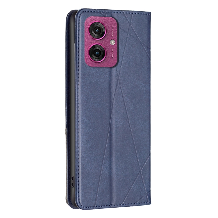 Funda de Cuero Magnética con Textura de Rombos para Motorola Moto G55 (Azul)