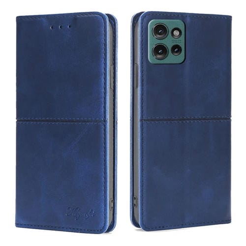 Funda de Cuero Magnética con Textura de Vaca para Motorola Edge 50 5G (Azul)