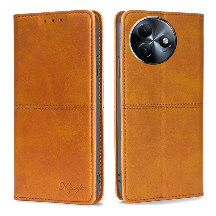Funda de Cuero Magnética con Textura de Vaca para Itel S24 4G (Marrón Claro)