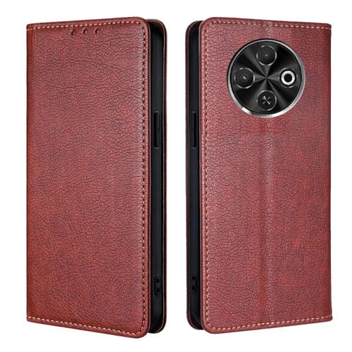 Funda de Cuero Magnética para Tecno Spark 30C 4G con Acabado Brillante (Marrón)