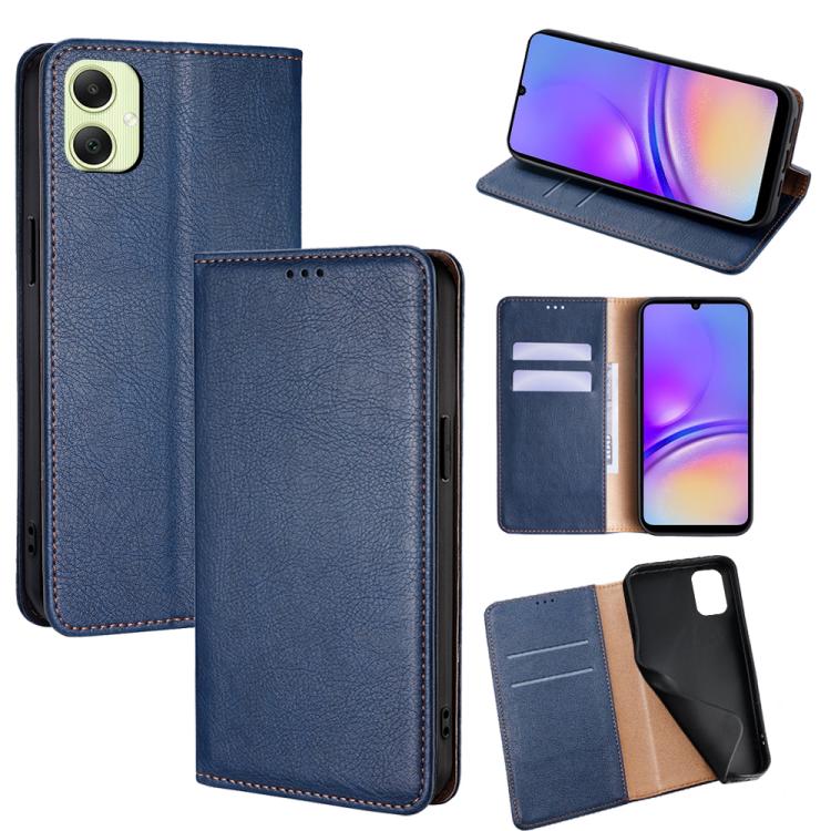 Funda de cuero magnético con acabado brillante y aceite para Samsung Galaxy A05 4G (azul)
