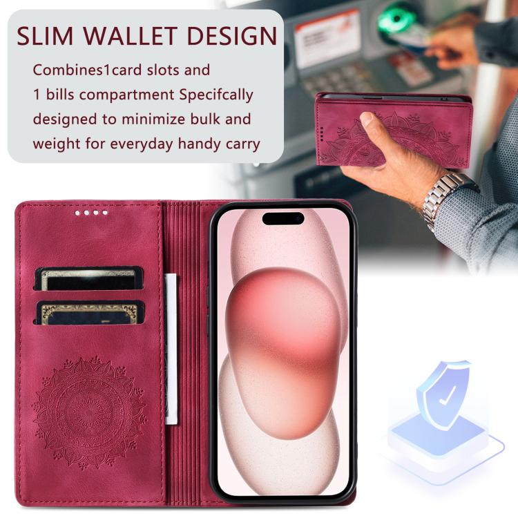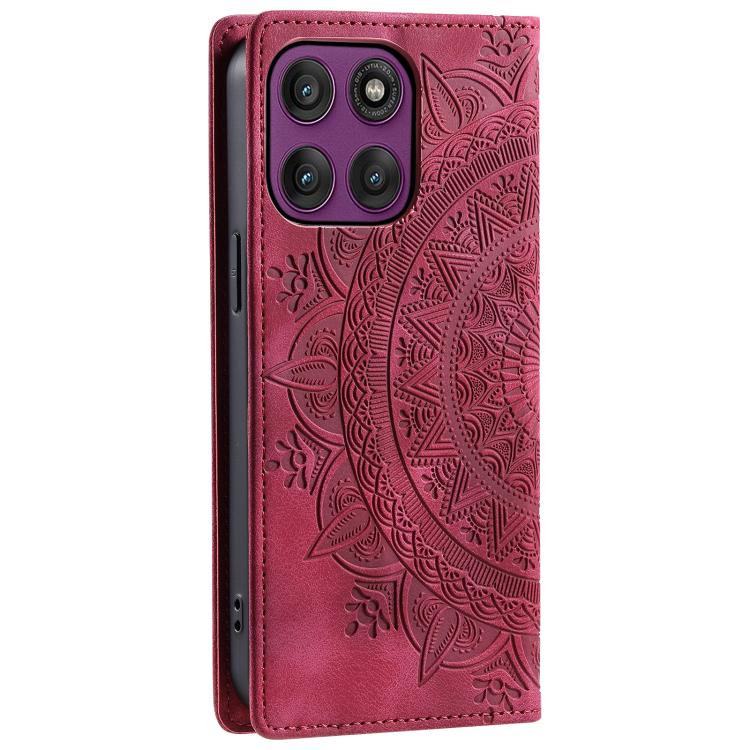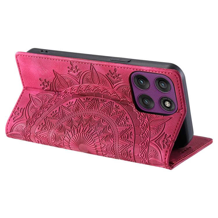 Funda de cuero magnético con relieve Totem para Motorola Edge 60 Pro (roja)