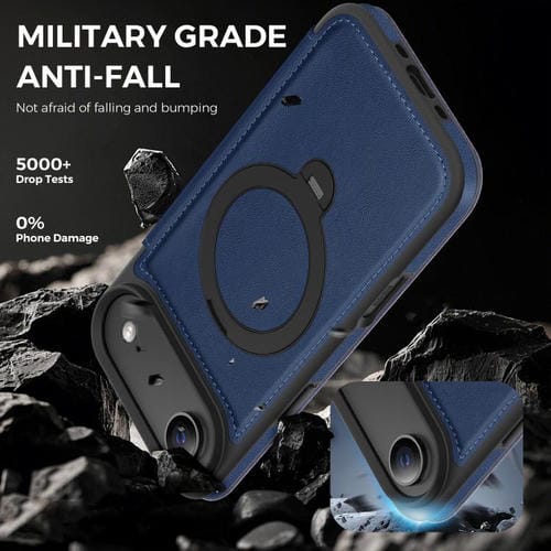 Funda de cuero MagSafe RFID con rotación de 360 grados para iPhone 17 (azul)