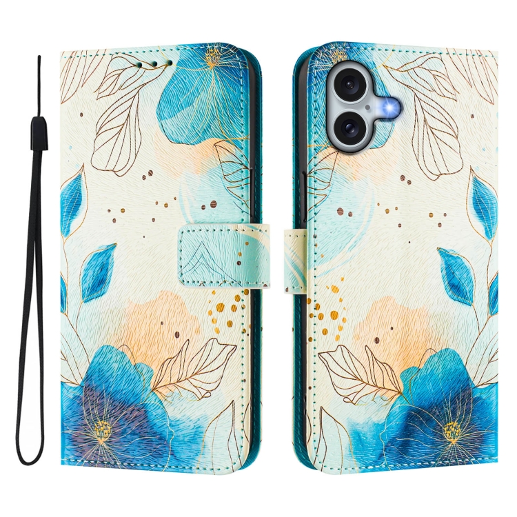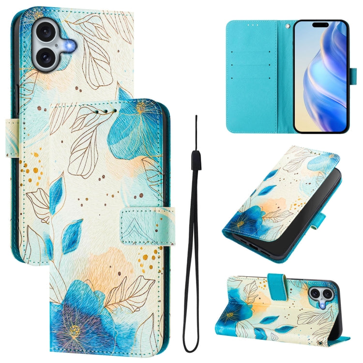 Funda de Cuero para iPhone 16 con Diseño de Dibujo Artístico Flores
