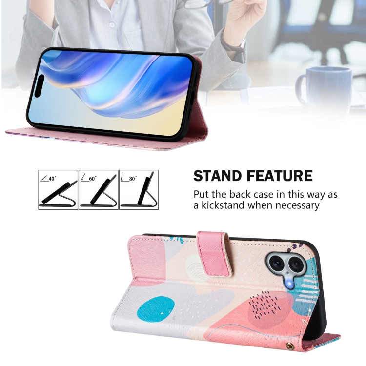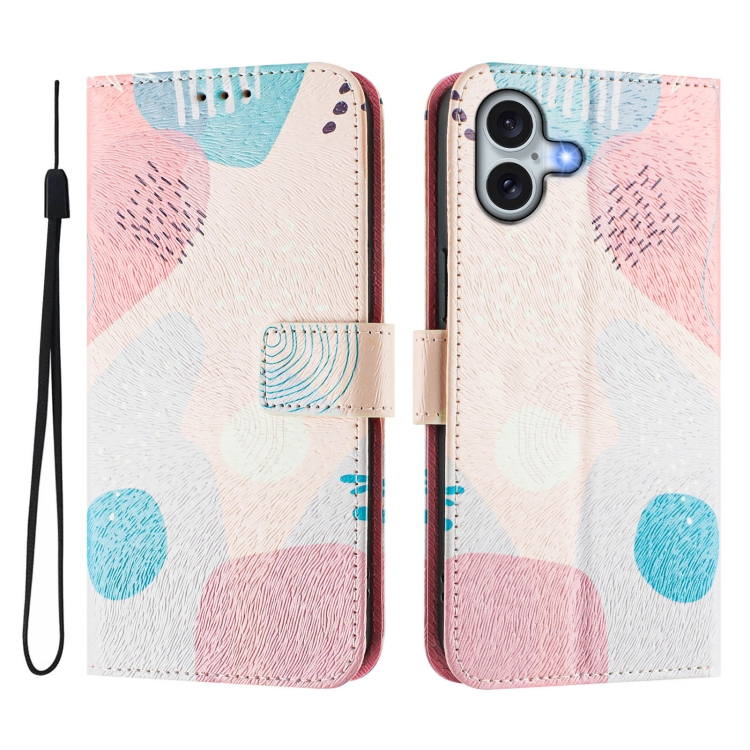 Funda de Cuero para iPhone 16 Diseño Dibujos Artísticos Rompecabezas de Grafiti (Color)