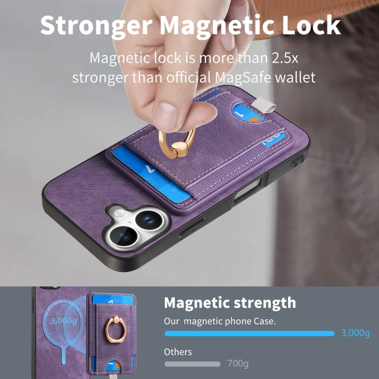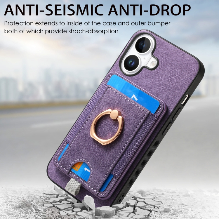 Funda de Cuero para iPhone 16 Plus con Tarjetero Magnético Divisible Estilo Retro (Morado)
