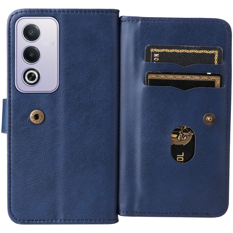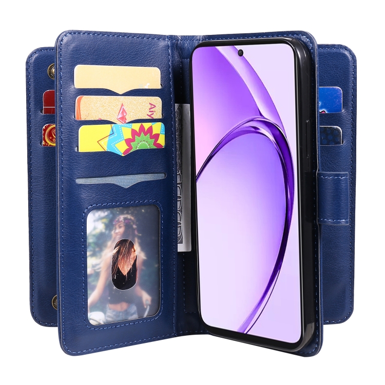 Funda de Cuero para Teléfono con 10 Ranuras para Tarjetas y Billetera Multifunción para Oppo A3 Pro 5G/A3 Pro India (Azul Oscuro)
