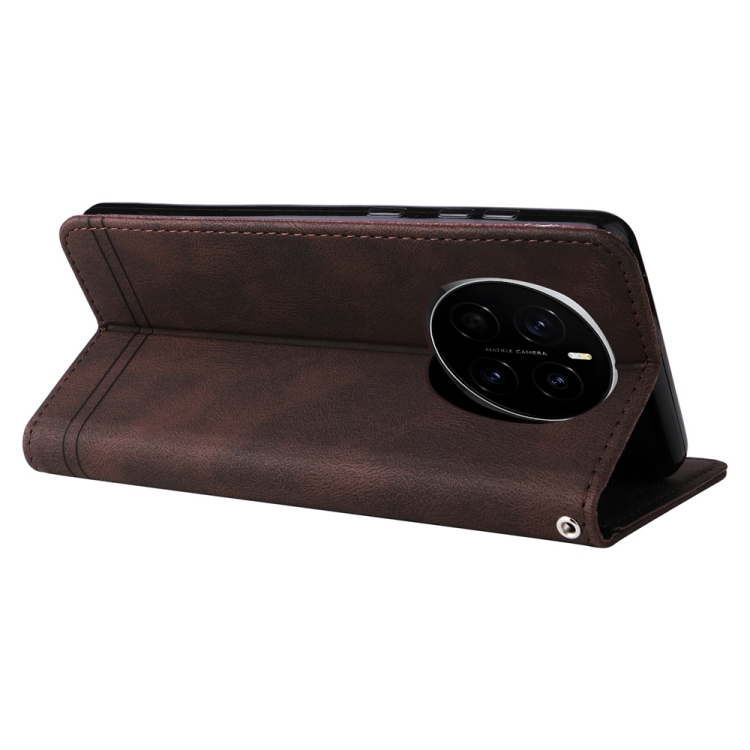 Funda de Cuero para Honor Magic7 con Botones de Metal y Diseño Árbol de la Vida (Marrón)