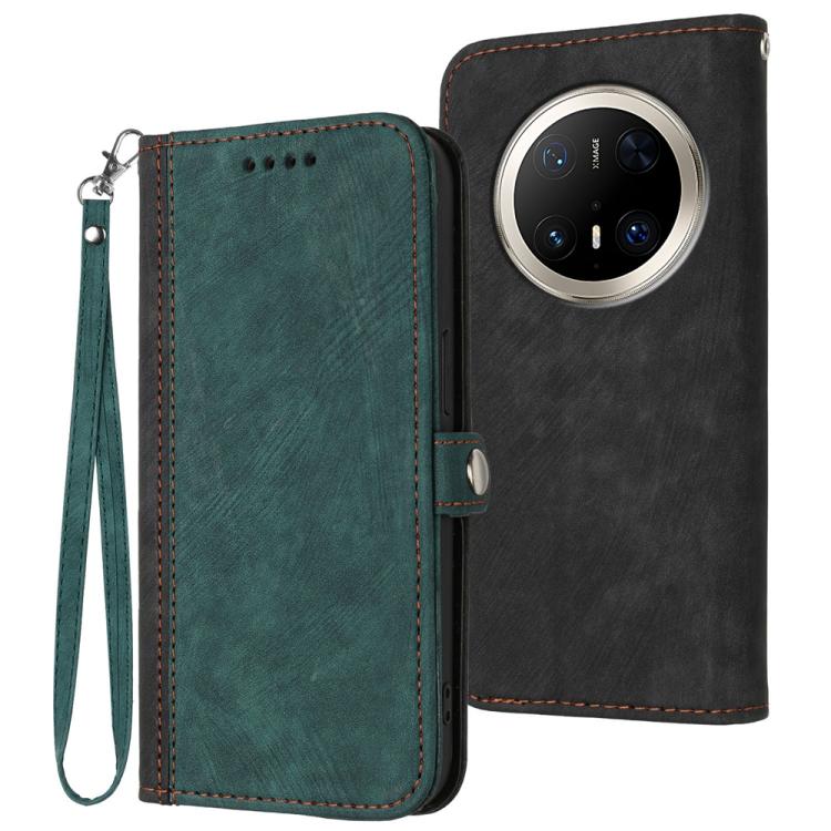 Funda de Cuero para Huawei Mate 70 Pro y Mate 70 Pro+ con Correa y Hebilla Lateral Doble (Verde Oscuro)
