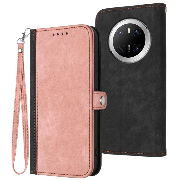 Funda de Cuero para Huawei Mate 70 con Correa de Mano y Hebilla Lateral Doble (Rosa)