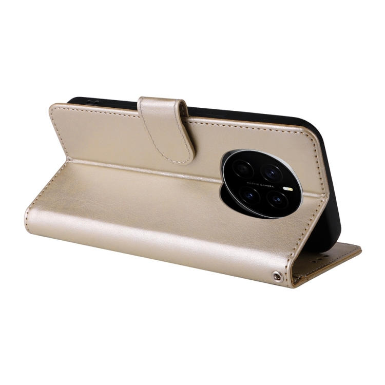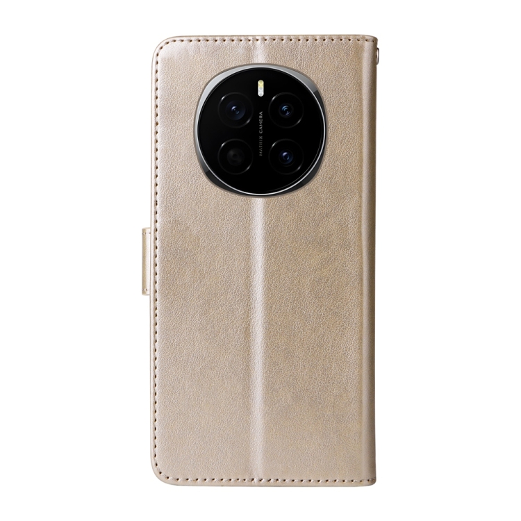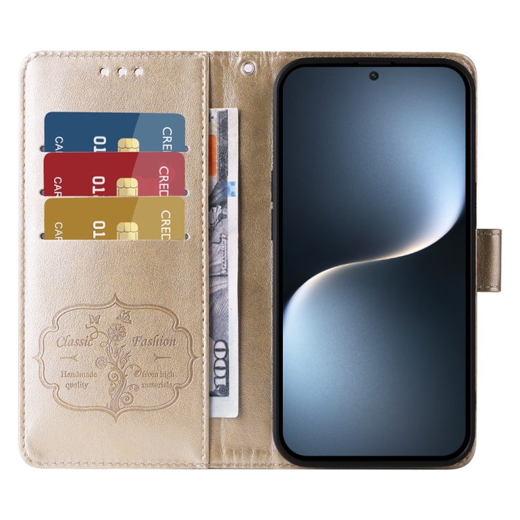 Funda de Cuero para Honor Magic7 con Diseño de Mariposas y Flores en Relieve (Dorada)