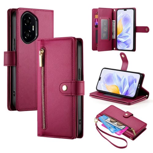 Funda de Cuero para Honor 300 Pro y 300 Ultra con 9 Ranuras para Tarjetas y Cremallera (Rojo)