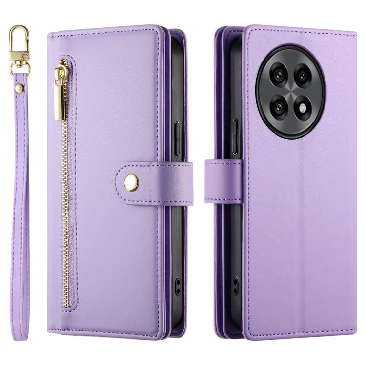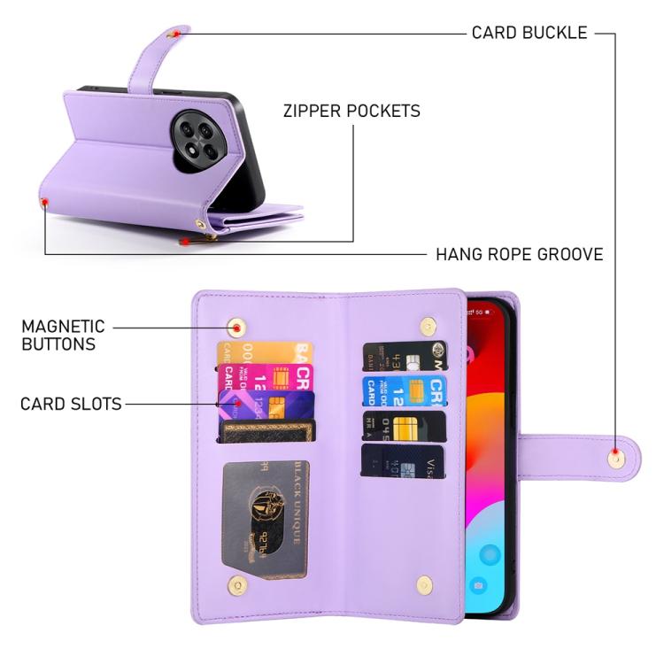 Funda de Cuero para Teléfono OnePlus 13R Ace 5 Ace 5 Pro con 9 Ranuras y Cremallera (Morado)