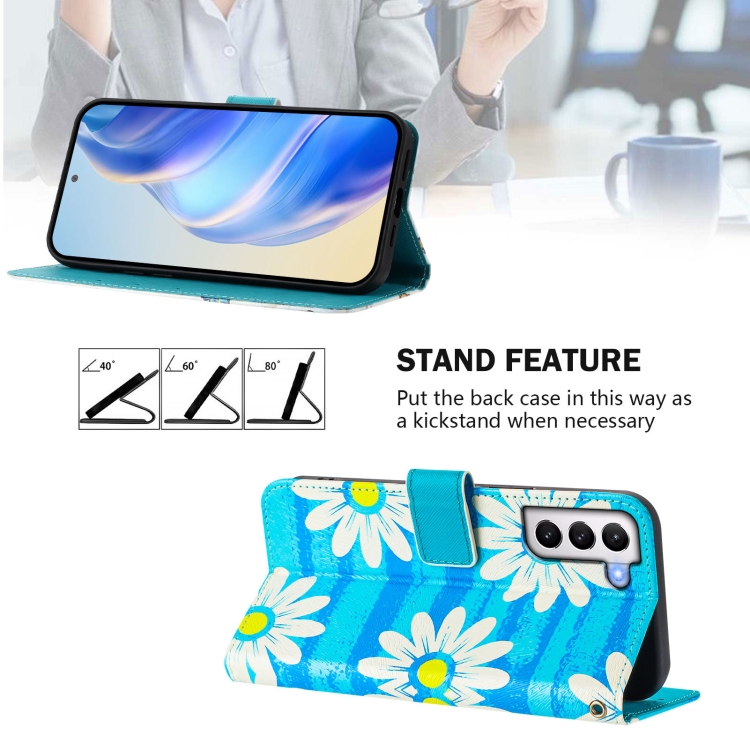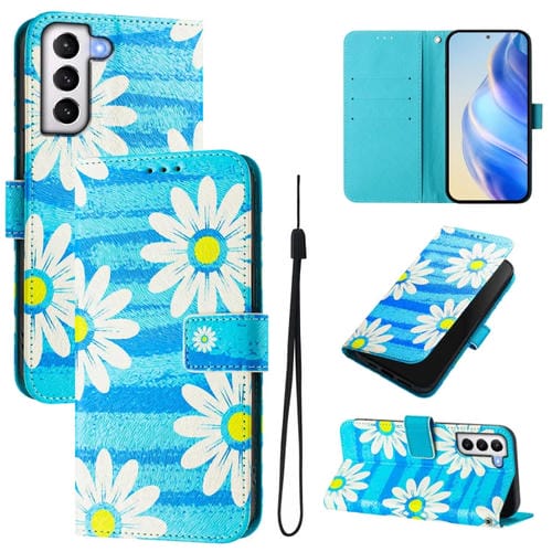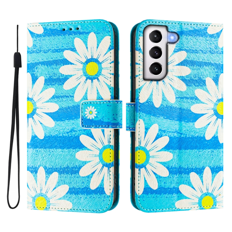 Funda de Cuero para Teléfono Samsung Galaxy S21+ 5G con Patrón de Dibujo Artístico (Margarita Azul)