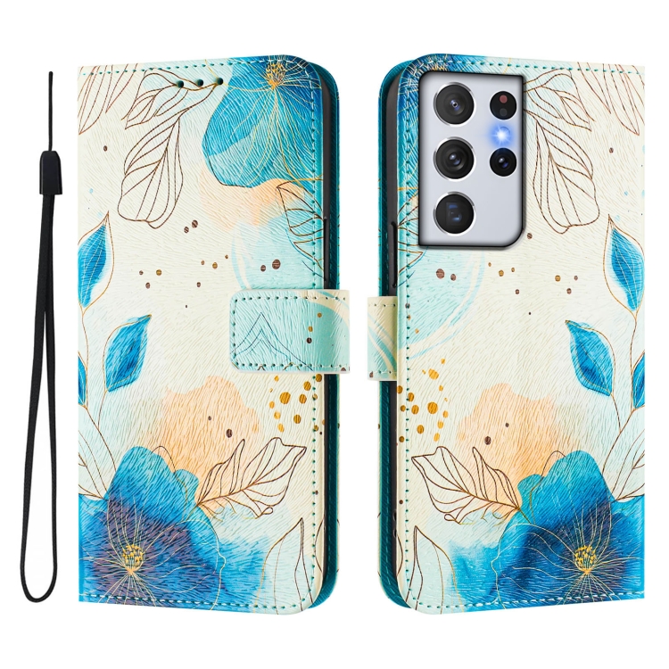 Funda de Cuero para Teléfono Samsung Galaxy S21 Ultra 5G con Patrón Artístico Flores Florecientes (Color)