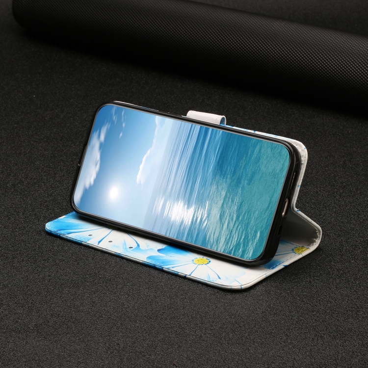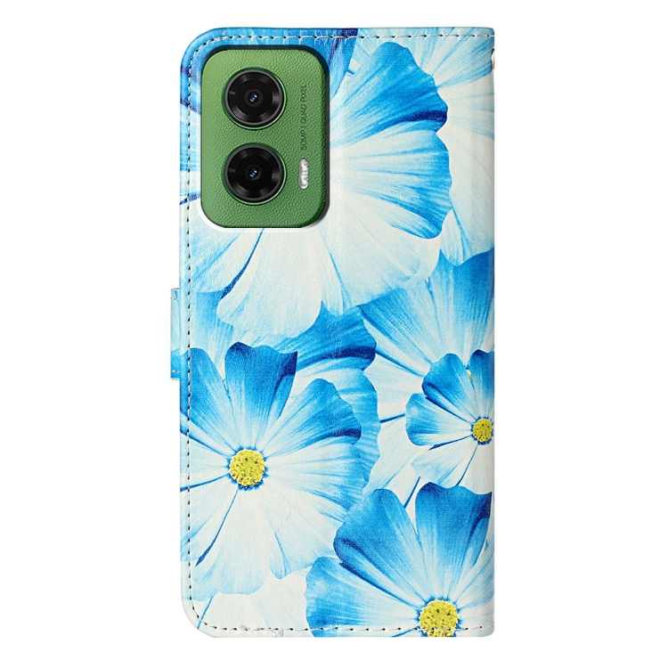 Funda de Cuero para Motorola Moto G35 con Patrón Mármol y Dibujo Flor Azul