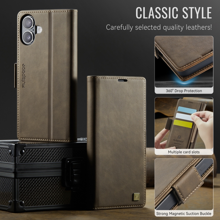 Funda de Cuero Magnética Rfid Magsafe con Hebilla Lateral para iPhone 16 Plus Autspace A11 (Café)