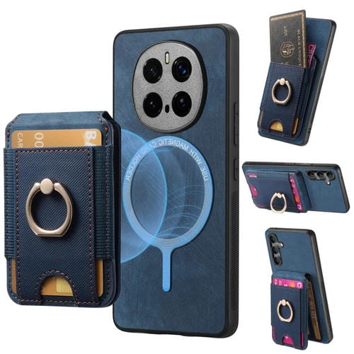 Funda de Cuero con Soporte Magnético Divisible para Honor Magic 7 Pro (Azul)