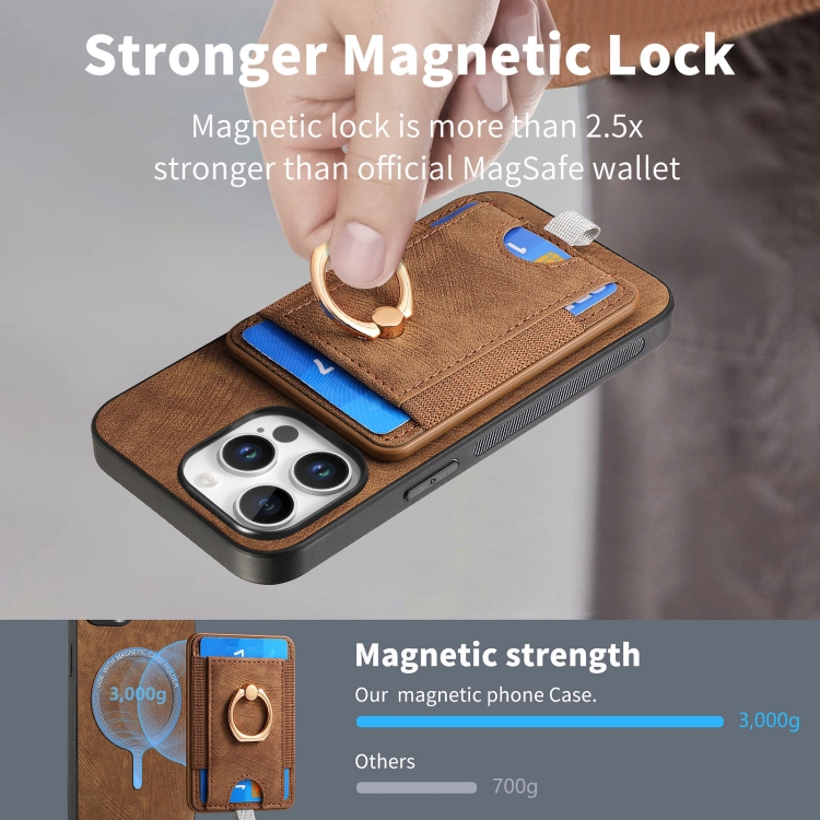5. La billetera de cuero cuenta con fuertes imanes incorporados que le permiten encajar sin esfuerzo en su lugar en la parte posterior de su teléfono, fácil de usar y quitar.