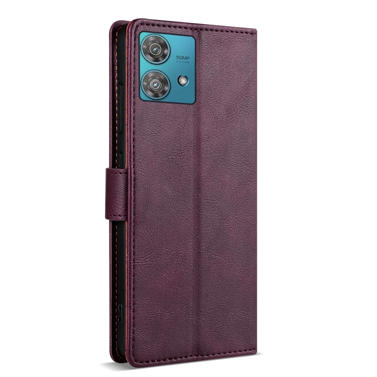 Funda de Cuero N.Bekus Csj-P1 para Motorola Edge 40 Neo (Rojo Vino)
