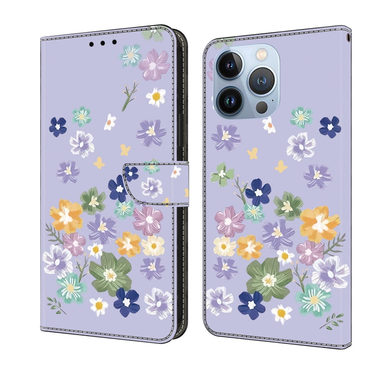 Funda de Cuero Pintada a Mano para iPhone 16 Pro (Floral Morado)