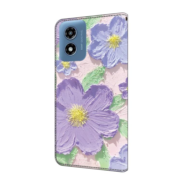 Funda de Cuero Pintada a Mano para Motorola Moto G Play 2024 (Flores Moradas)