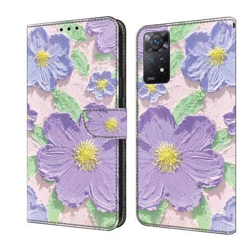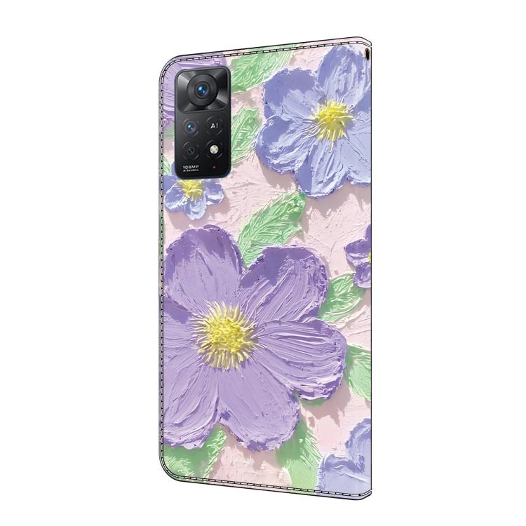 Funda de Cuero Pintada a Mano para Redmi Note 12 Pro 4G/11 Pro (Pintura al Óleo de Flores Moradas)