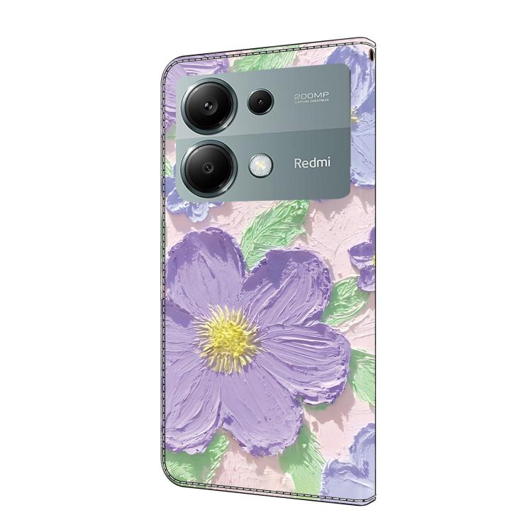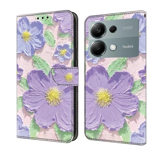 Funda de Cuero Pintada a Mano para Redmi Note 13 Pro 4G (Pintura al Óleo de Flores Moradas)