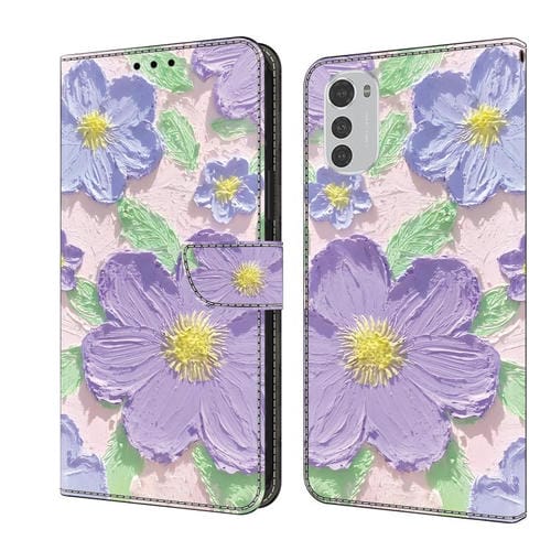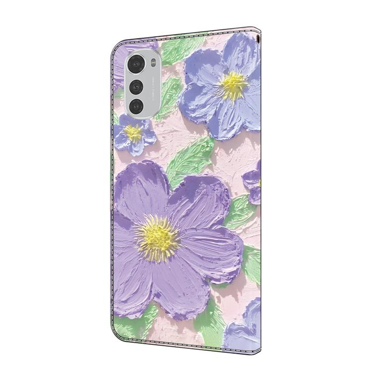 Funda de Cuero Motorola Moto E32 Pintada al Óleo con Flores Moradas