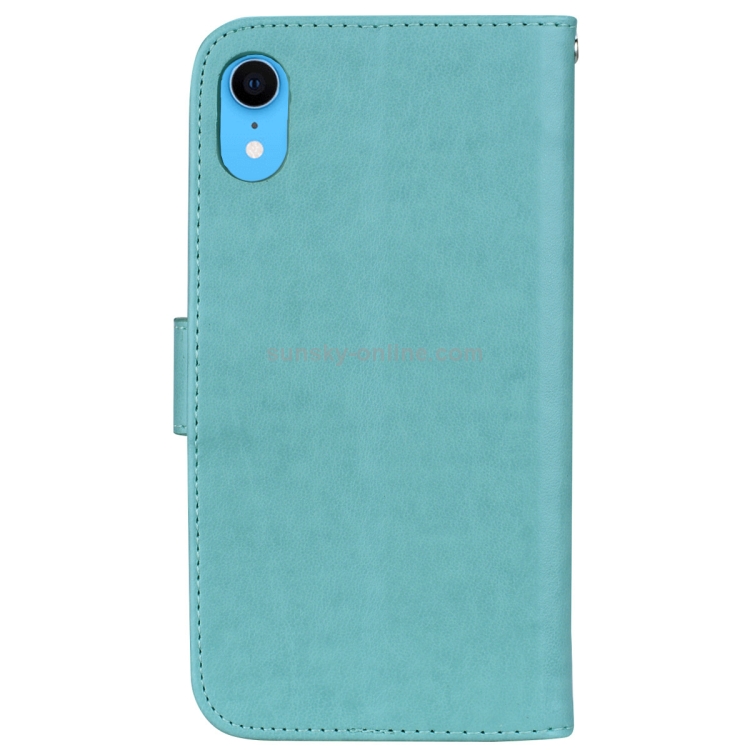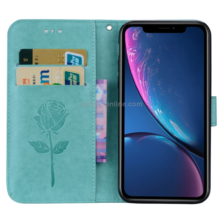 Funda de Cuero Pu con Tapa Horizontal En Relieve para iPhone Xr con Soporte y Ranuras para Tarjetas y Billetera (Verde)