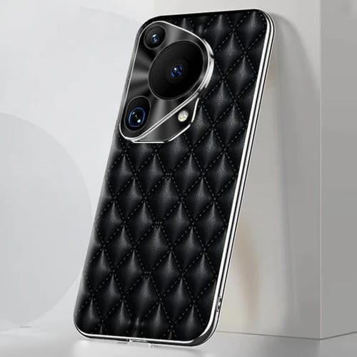 - 1x Funda de Cuero PU con Textura Rómbica y Borde Plateado para Huawei Pura 70 Ultra (Negro)