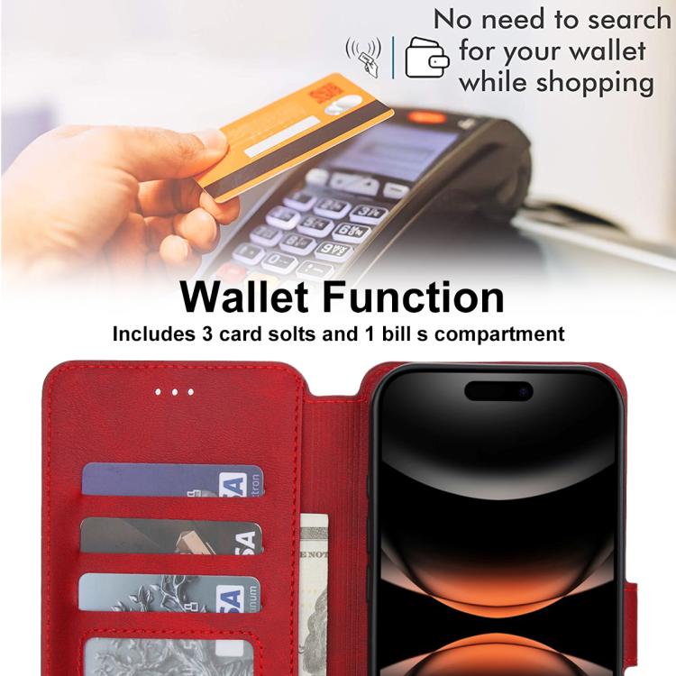 Funda de cuero PU + TPU a prueba de golpes para iPhone 17 Pro Max (roja)