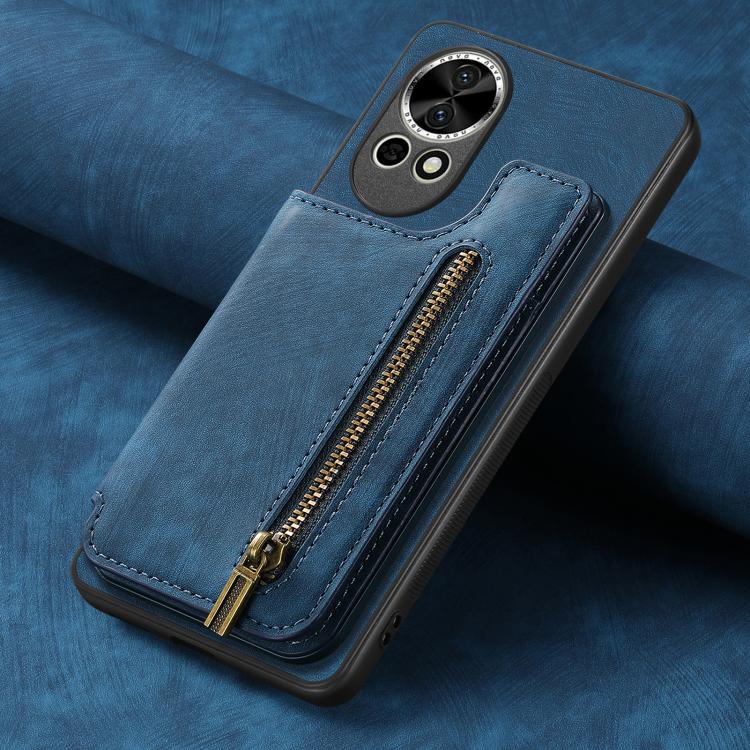 Funda de Cuero Retro con Cremallera para Huawei Nova 10 (Azul)