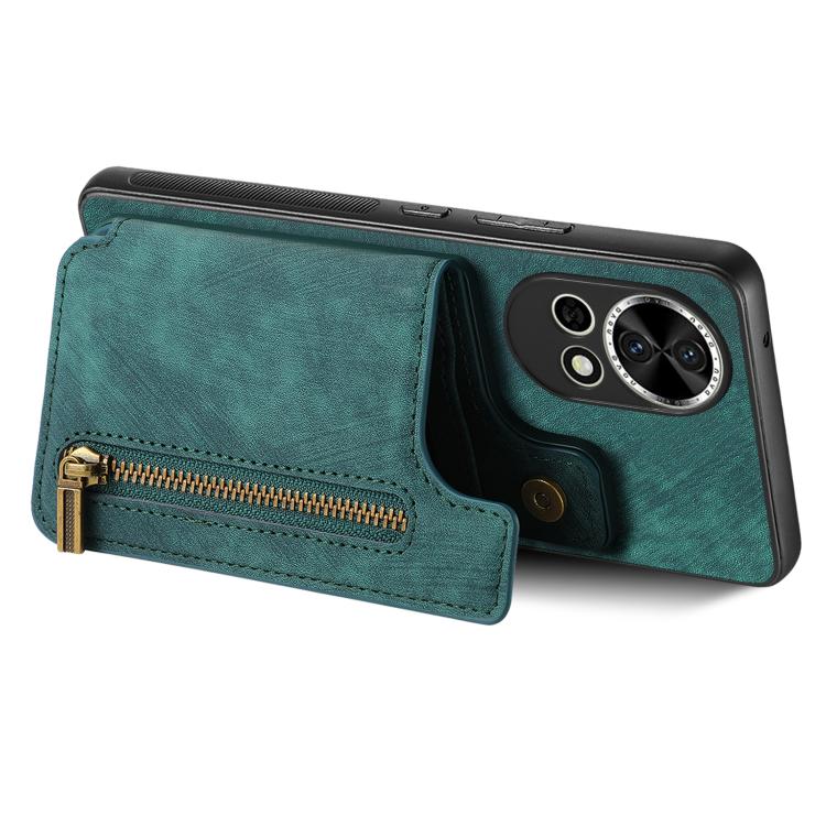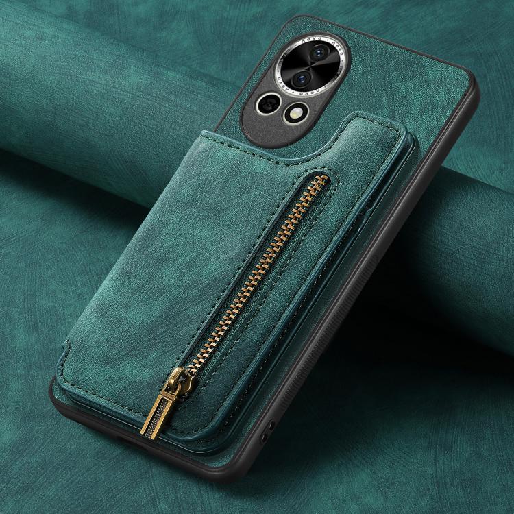 Funda de Cuero Retro con Cremallera para Huawei Nova 9 Se (Verde)