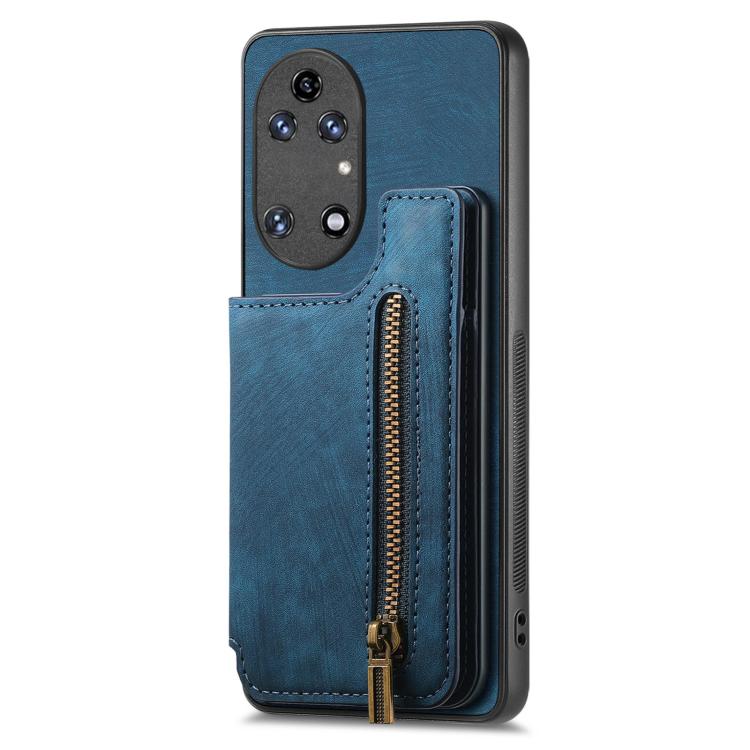 Funda de Cuero Retro con Cremallera para Huawei P50 (Azul)