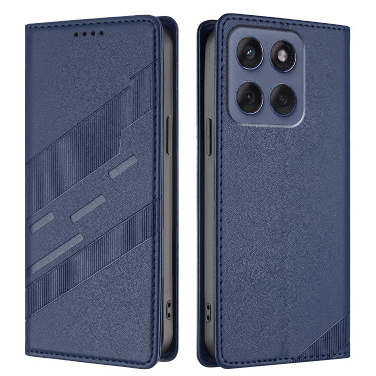 Funda de cuero retro con relieve para Motorola Edge 60 Fusion (azul oscuro)