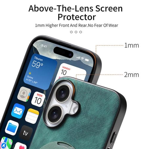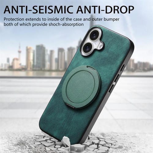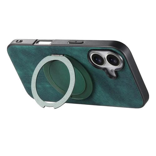 Funda de cuero retro con soporte giratorio redondo para iPhone 17 (verde)