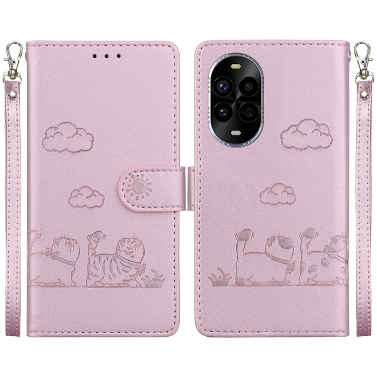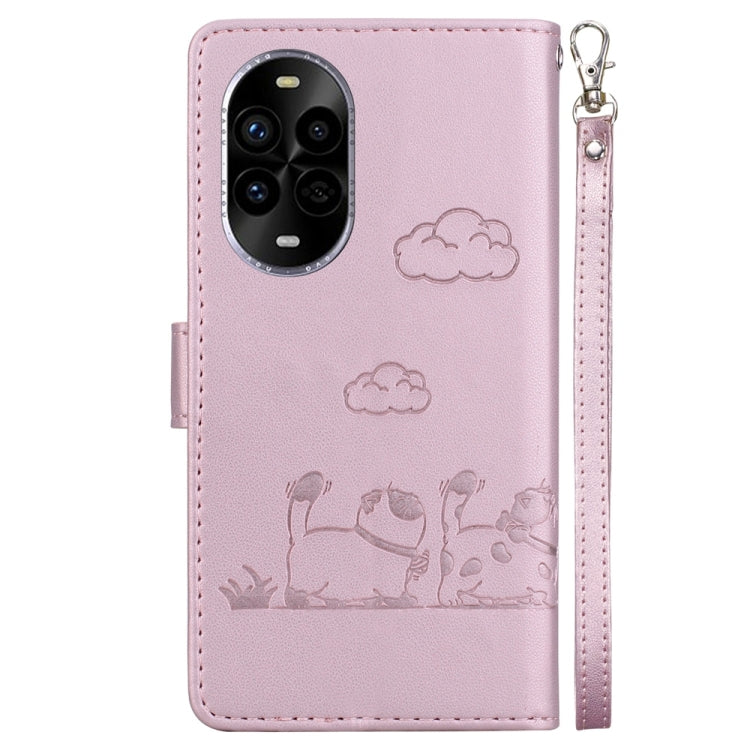 Funda de Cuero Rfid para Huawei Nova 13 Pro con Diseño de Gatos (Oro Rosa)