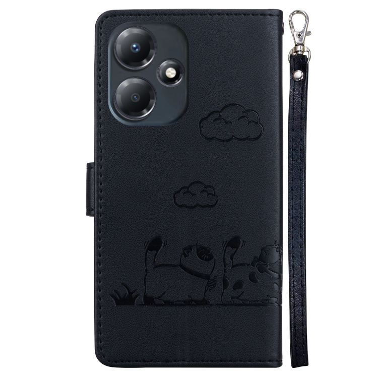 Funda de Cuero Rfid para Infinix Hot 30 Play con Diseño de Gatos (Negra)