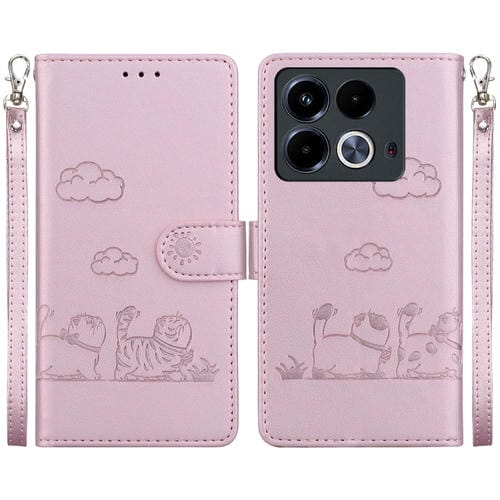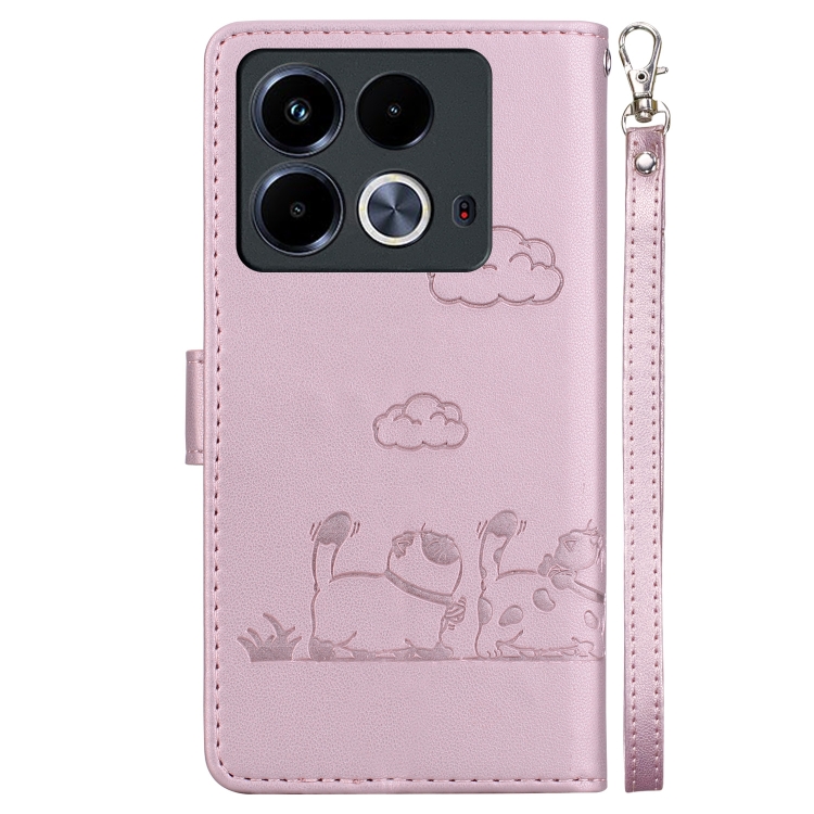 Funda de Cuero Rfid para Infinix Note 40 4G con Diseño de Gatos (Oro Rosa)