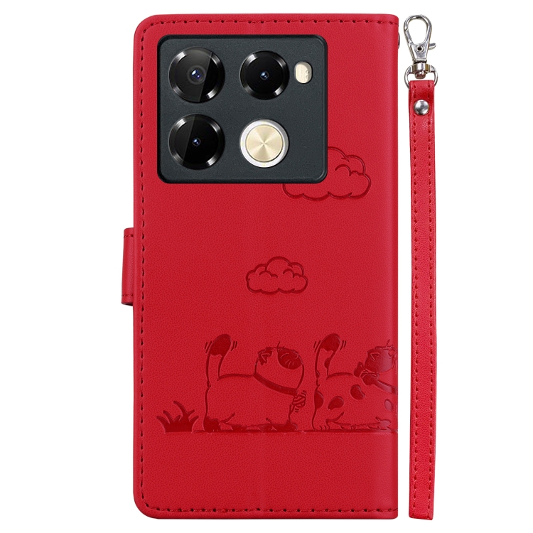 Funda de Cuero Rfid para Infinix Note 40 Pro 5G/4G con Diseño de Gatos (Rojo)