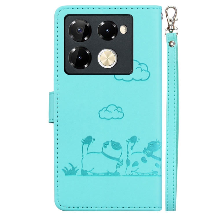 Funda de Cuero Rfid para Infinix Note 40 Pro 5G/4G con Diseño de Gatos (Verde)