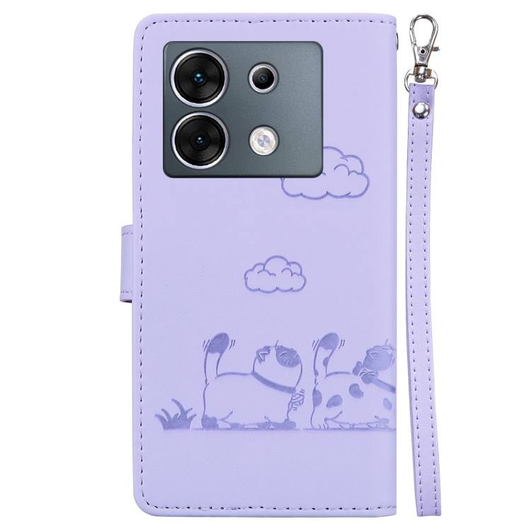 Funda de Cuero Rfid para Infinix Zero 30 5G con Diseño de Gatos (Morado)