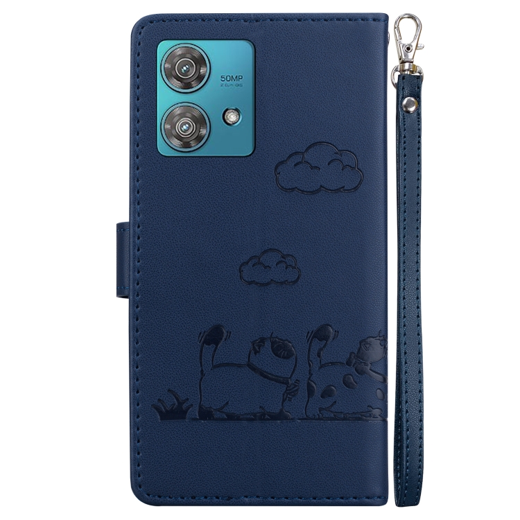 Funda de Cuero RFID para Motorola Edge 40 Neo con Diseño de Gatos (Azul)