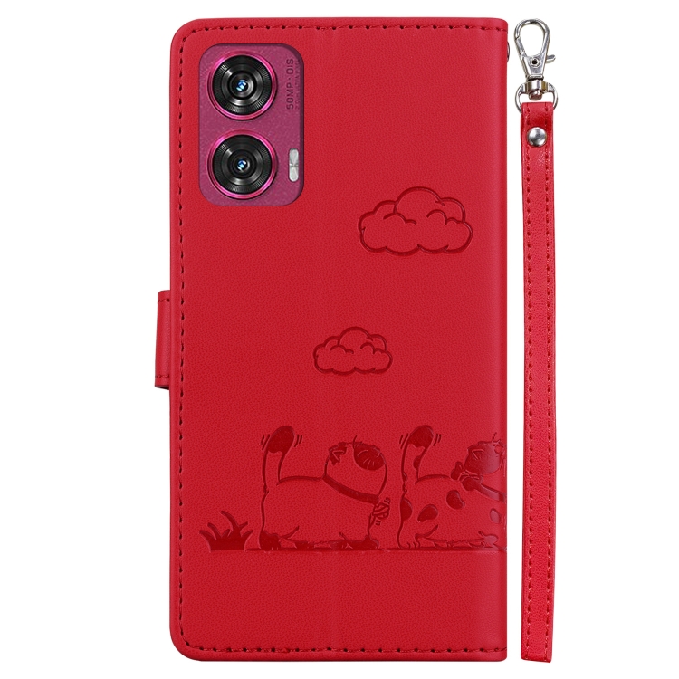 Funda de Cuero Rfid para Motorola Edge 50 Fusion con Diseño de Gatos (Rojo)
