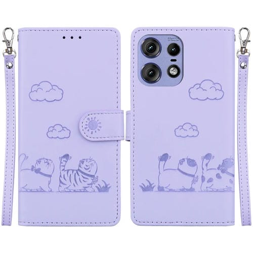 Funda de Cuero Rfid para Motorola Edge 50 Pro con Diseño de Gatos (Morado)