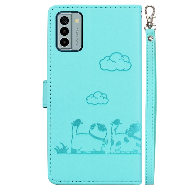 Funda de Cuero Rfid para Nokia G22 con Diseño de Gatos (Verde)